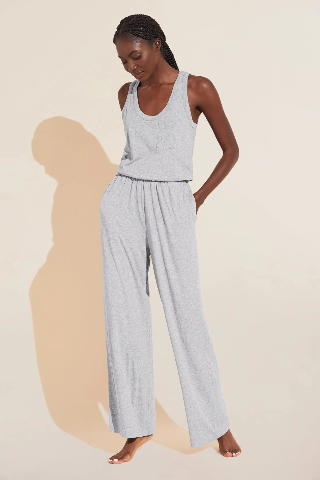 One and done. This lightweight jumpsuit is made of 70% Better Cotton and 30% Aloe-infused Viscose. Plus, it’s verified by OEKO-TEX® Standard 100, which means that our fabric is processed without harmful chemicals and dyes in a mill that uses safe and non-toxic dyes. This jumpsuit has pockets, a smocked waistband, a wide leg, and a bra-friendly scooped neck. Layer Pima intimates underneath and complete the look with your favorite sandal or sneaker.