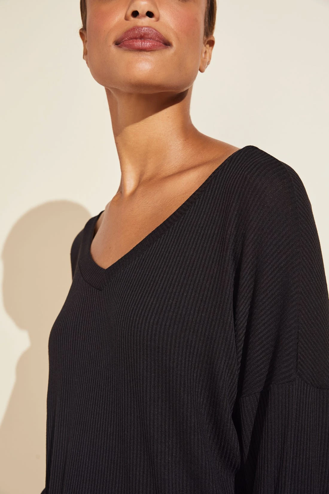 The Elon collection exudes ease and simplicity, exactly what you need when it’s time to unwind. Made from light and airy ribbed fabric, it has just enough stretch to give effortless drapability. This relaxed loungewear feels soft against the skin and its cooling breathability is ideal for those who run warm. The pull-on V-neck top has a flattering neckline and forgiving fit that makes it perfectly suited for wearing at home or out and about. Wear it with your preferred Elon bottoms, jeans, or leggings.