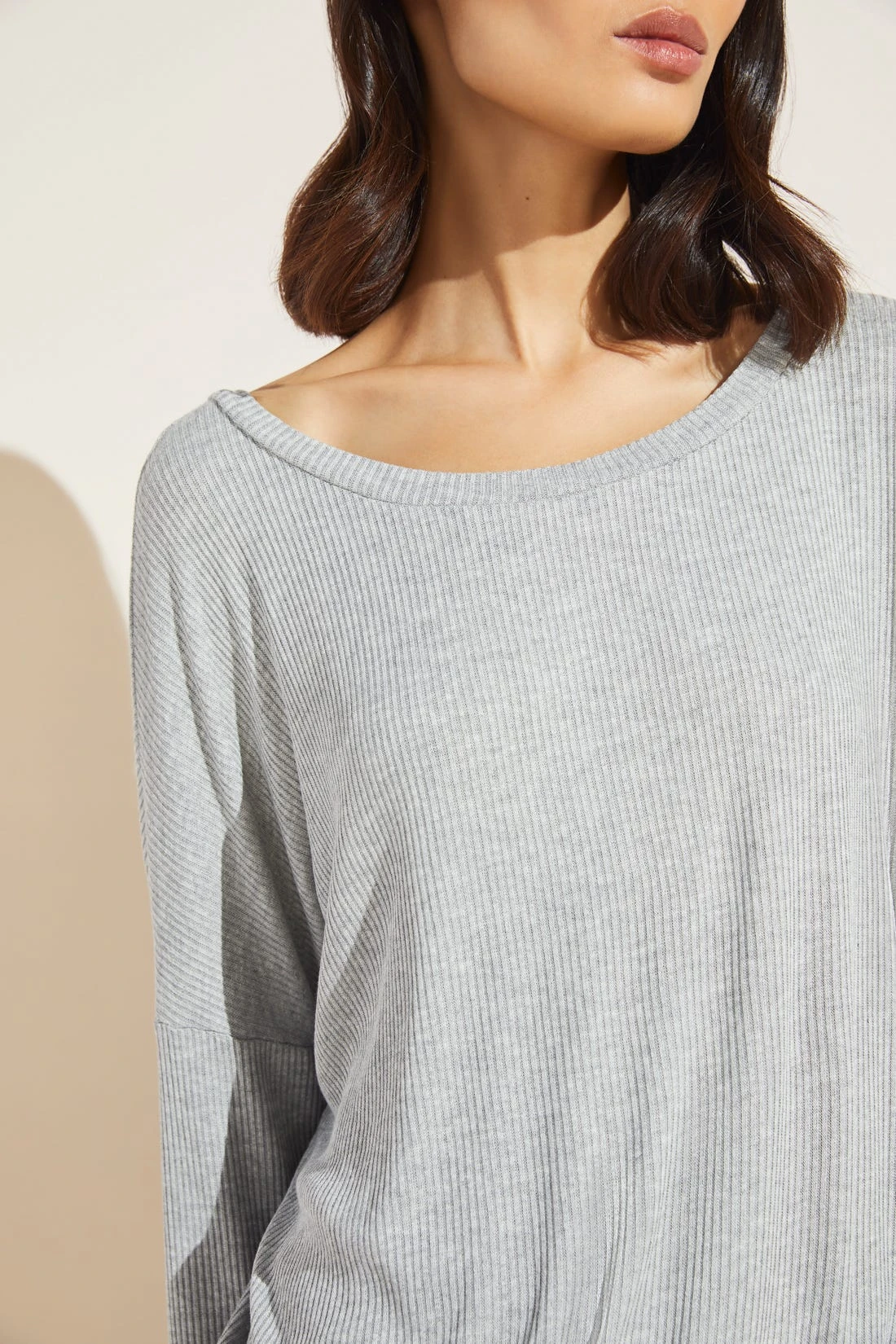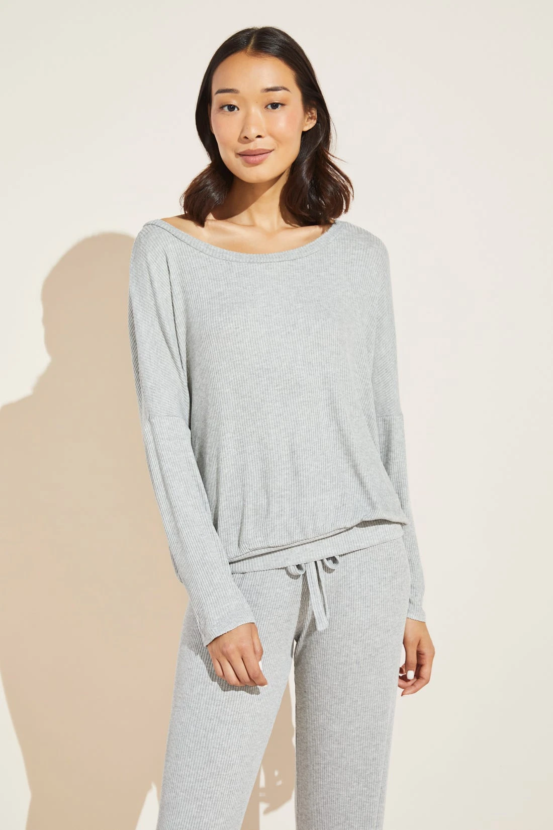 The Elon collection exudes ease and simplicity, exactly what you need when it’s time to unwind. Made from light and airy ribbed fabric, it has just enough stretch to give effortless drapability. This relaxed loungewear feels soft against the skin and its cooling breathability is ideal for those who run warm. The classic, oversized top has a wide boat neck designed to be worn off the shoulder and easy-to-wear fit. Pull it on over a sports bra or tank when you need an extra layer, or pair it with any matching Elon pieces.