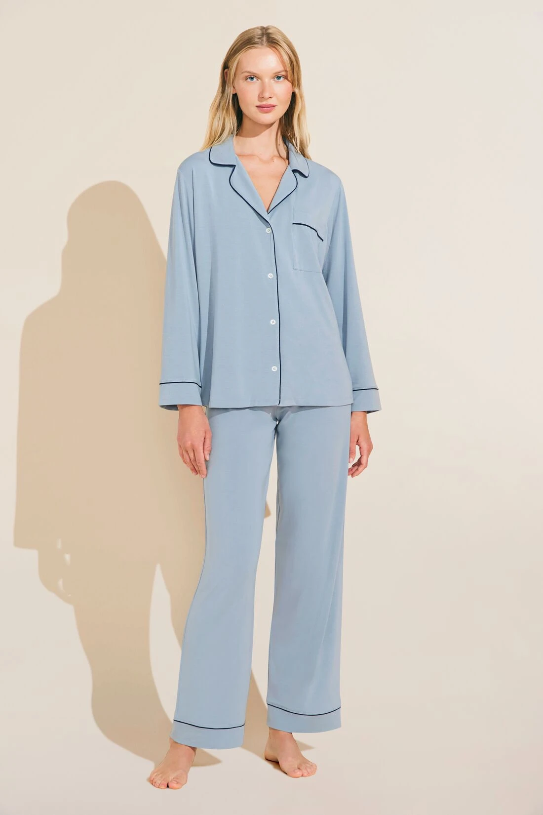 In the mid-2000s, we set out to create the world’s softest pajamas for a beautiful night’s rest. Gisele delivers, merging a classic men’s PJ silhouette with sustainable TENCEL™ Modal fibers. Our luxurious, temperature-regulating knit fabric drapes and falls in all the right ways. Plus, it’s machine washable, and gentle on skin, so it not only feels beautiful but it’s easy to care for, too.