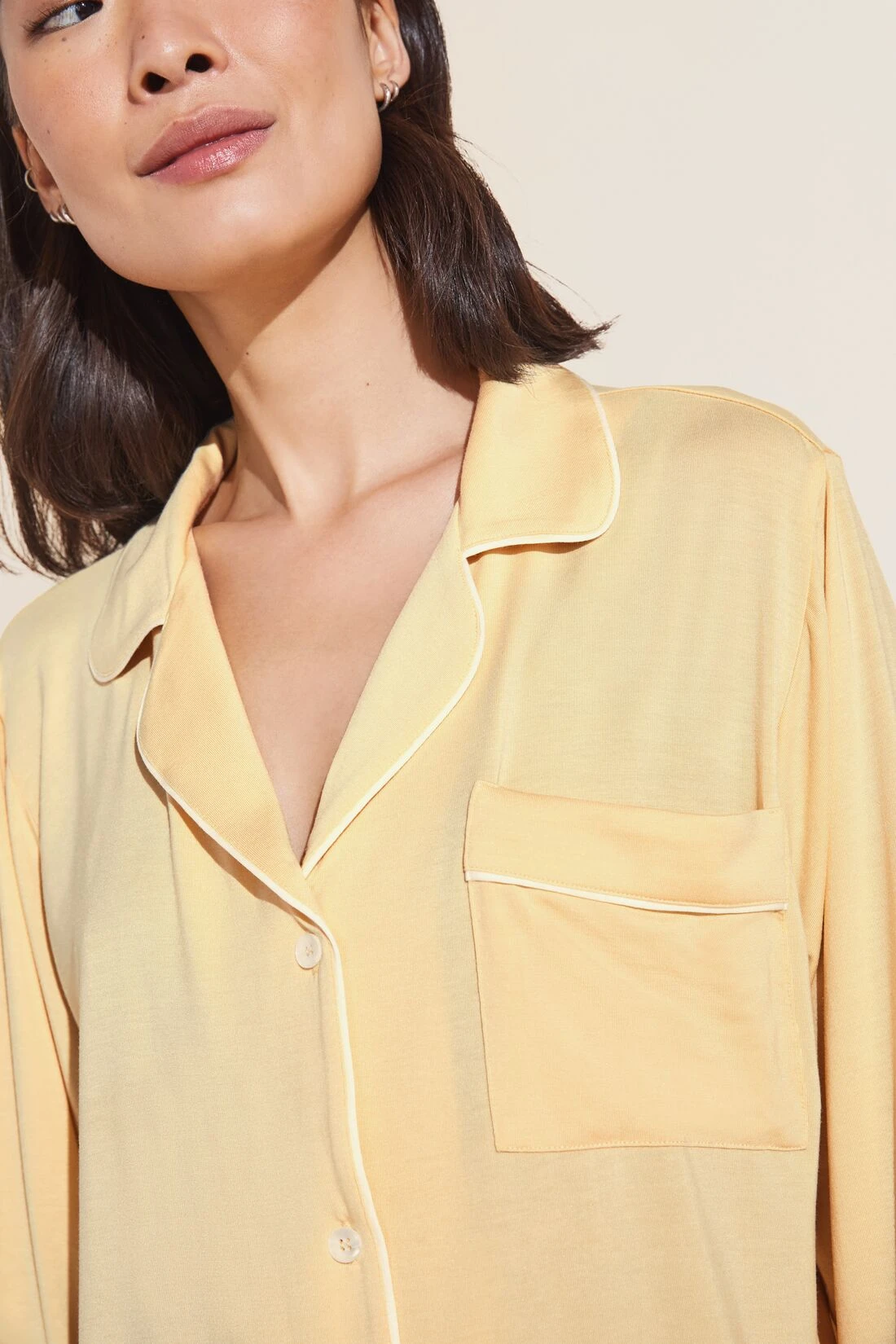In the mid-2000s, we set out to create the world’s softest pajamas for a beautiful night’s rest. Gisele delivers, merging a classic men’s PJ silhouette with sustainable TENCEL™ Modal fibers. Our luxurious, temperature-regulating knit fabric drapes and falls in all the right ways. Plus, it’s machine washable, and gentle on skin, so it not only feels beautiful but it’s easy to care for, too.