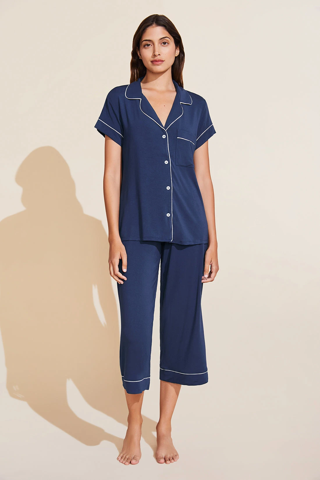 In the mid-2000s, we set out to create the world’s softest pajamas for a beautiful night’s rest. Gisele delivers, merging a classic men’s PJ silhouette with sustainable TENCEL™ Modal fibers. Our luxurious, temperature-regulating knit fabric drapes and falls in all the right ways, enveloping the body in comfort. Plus, it’s machine washable, and gentle on skin, so it not only feels beautiful but it’s easy to care for, too. Reach for the cropped set when you want a sharp, polished look or if you prefer an ankle-length pant.