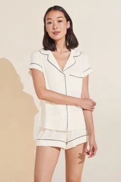 In the mid-2000s, we set out to create the world’s softest pajamas for a beautiful night’s rest. Gisele delivers, merging a classic men’s PJ silhouette with sustainable TENCEL™ Modal fibers. Our luxurious, temperature-regulating knit fabric drapes and falls in all the right ways, enveloping the body in comfort. Plus, it’s machine washable, and gentle on skin, so it not only feels beautiful but it’s easy to care for too. This cheekier cut is ideal for hot sleepers or warm nights. For a longer, roomier fit, try our relaxed short PJ set.