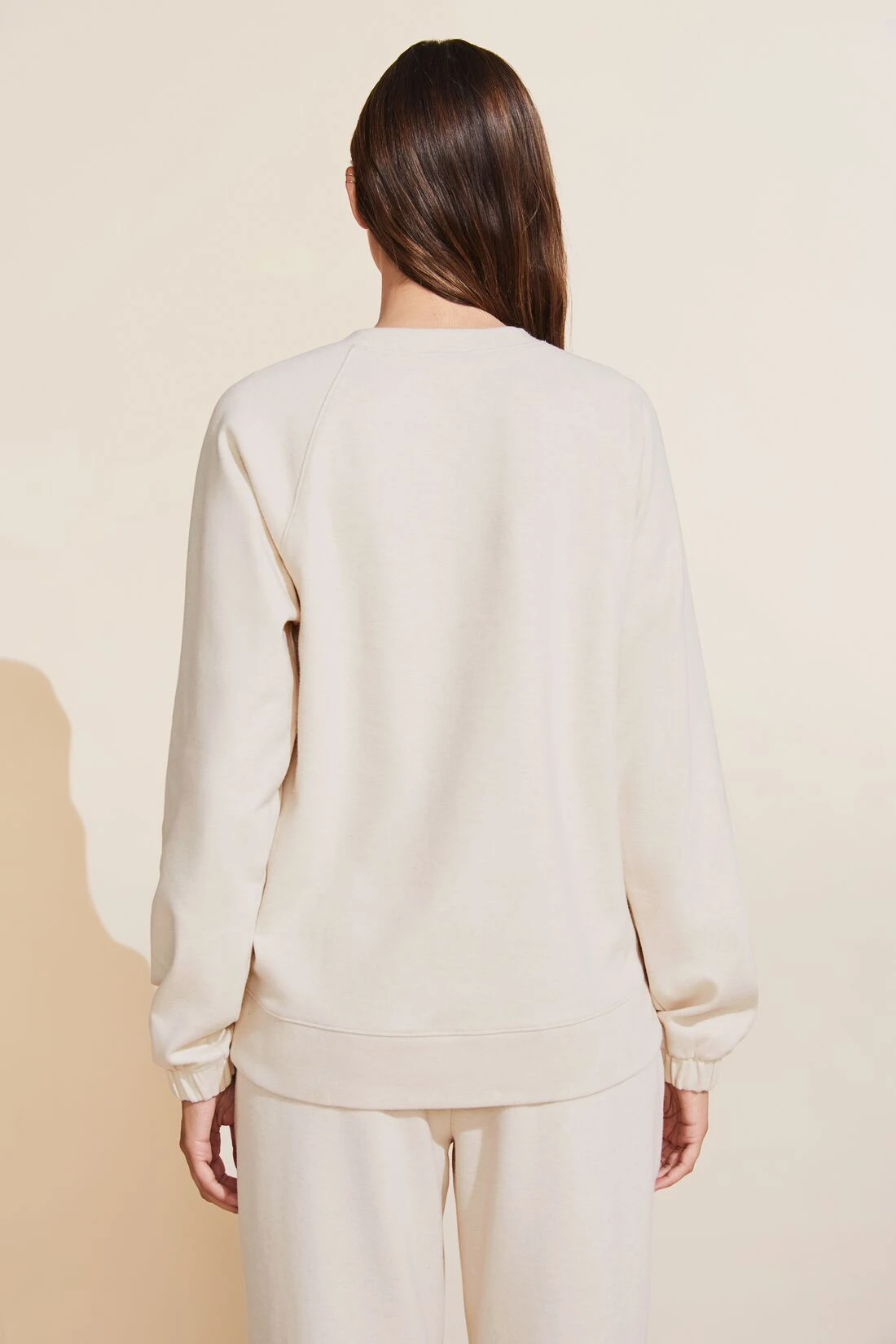 Your all-day everyday uniform just got better now that its color comes from a plant-based dye and natural botanical materials from the earth. With a mid-rise, wide leg design and a smooth elastic waistband, this easy pant has a flattering and comfortable fit. The side pockets feature zippers (perfect for your keys on a leisurely stroll), while the relaxed fit adds a laid-back look and feel. Made from 95% Better Cotton (BCI cotton) and a touch of spandex, this fabric is verified by OEKO-TEX® Standard 100, meaning it was processed without harmful chemicals. Pair this sweatshirt with the matching jogger for slow mornings,self-care nights, and everything in between.