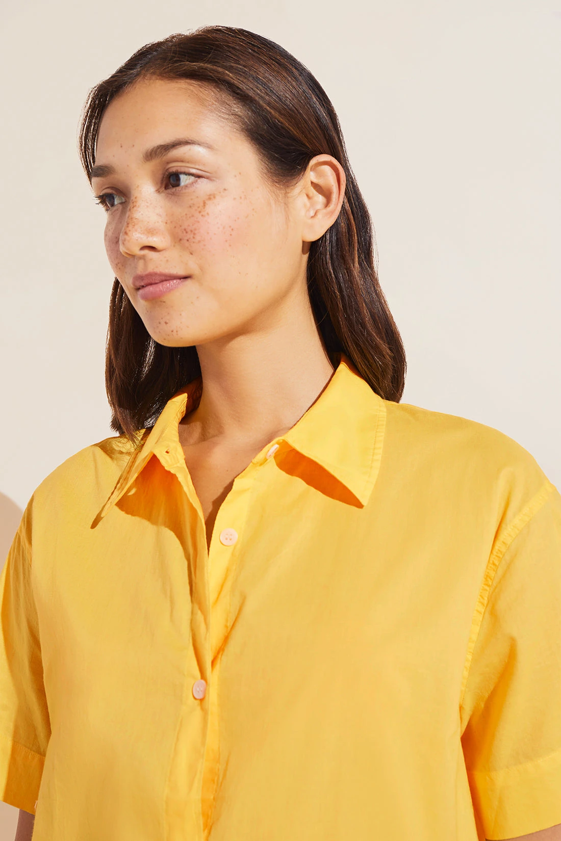 From sleep to street. Made from 100% organic cotton, this is a soft fabric with a structured drape and lightweight feel. It is also produced using bluesign®-certified processes and verified by OEKO-TEX® Standard 100, meaning our fabric is processed without harmful chemicals and dyes in a mill that uses safe and non-toxic dyes. The button down collared shirt with natural Corozo buttons, mid-rise short with elastic waistband and adjustable drawstring, and pockets are the ideal mix of function and relaxation. Mix and match the top with your favorite jeans for an errand run, or wear the set for a relaxing evening at home.