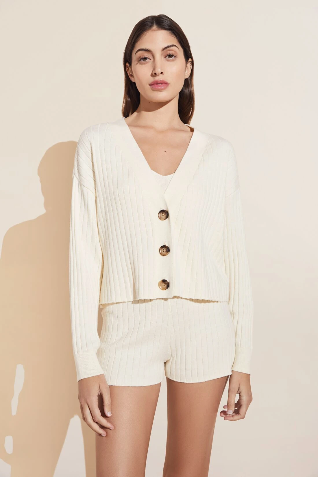 You’re set for softness. This lightweight three piece set is made of recycled cotton, acrylic, and recycled polyester. Plus, it’s verified by OEKO-TEX® Standard 100, which means that our fabric is processed without harmful chemicals and dyes in a mill that uses safe and non-toxic dyes. This set features a cropped cardi with oversized buttons, a fitted pull on long line bralette with wide straps, and a high-rise fitted short. Mix and match this staple piece with the matching sweater pant and cropped duster, or gift the full set to your favorite person who loves softness (and the planet) just as much as you. Perfect for an all day look (especially for fickle temps), wear as a set or style separately.