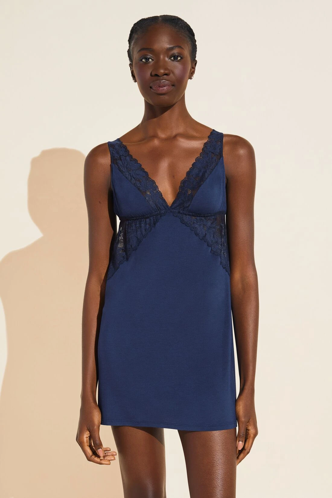 • Short chemise with plunge neckline