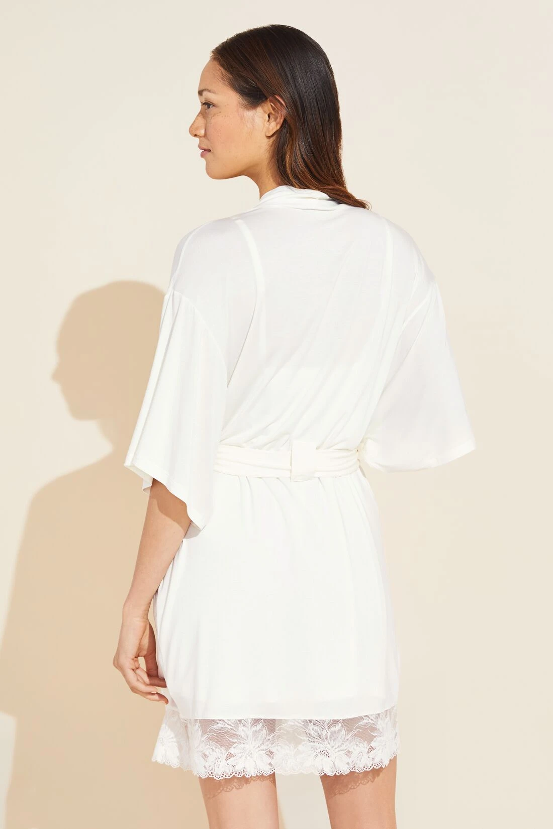 • Lace trim, short kimono sleeve robe