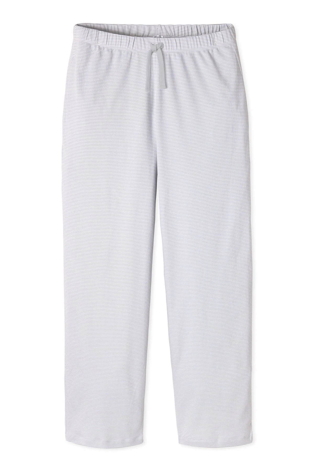 The Mens Pima Pajama Pants in Gray Stripe feature an elastic waistband with a drawstring tie and pockets. Strengthen your lounge game in the softest cotton imaginable. Made from 100% Pima cotton.