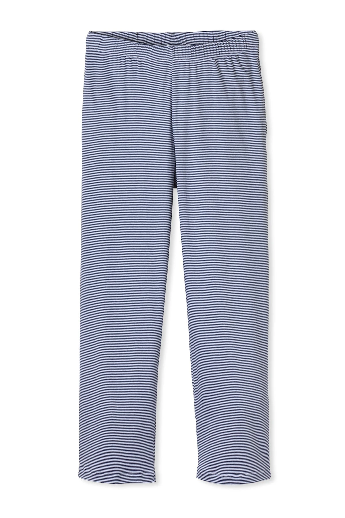 The Mens Pima Pajama Pants in True Navy, a classic navy and white stripe, feature an elastic waistband and pockets. Strengthen your lounge game in the softest cotton imaginable. Made from 100% Pima cotton.