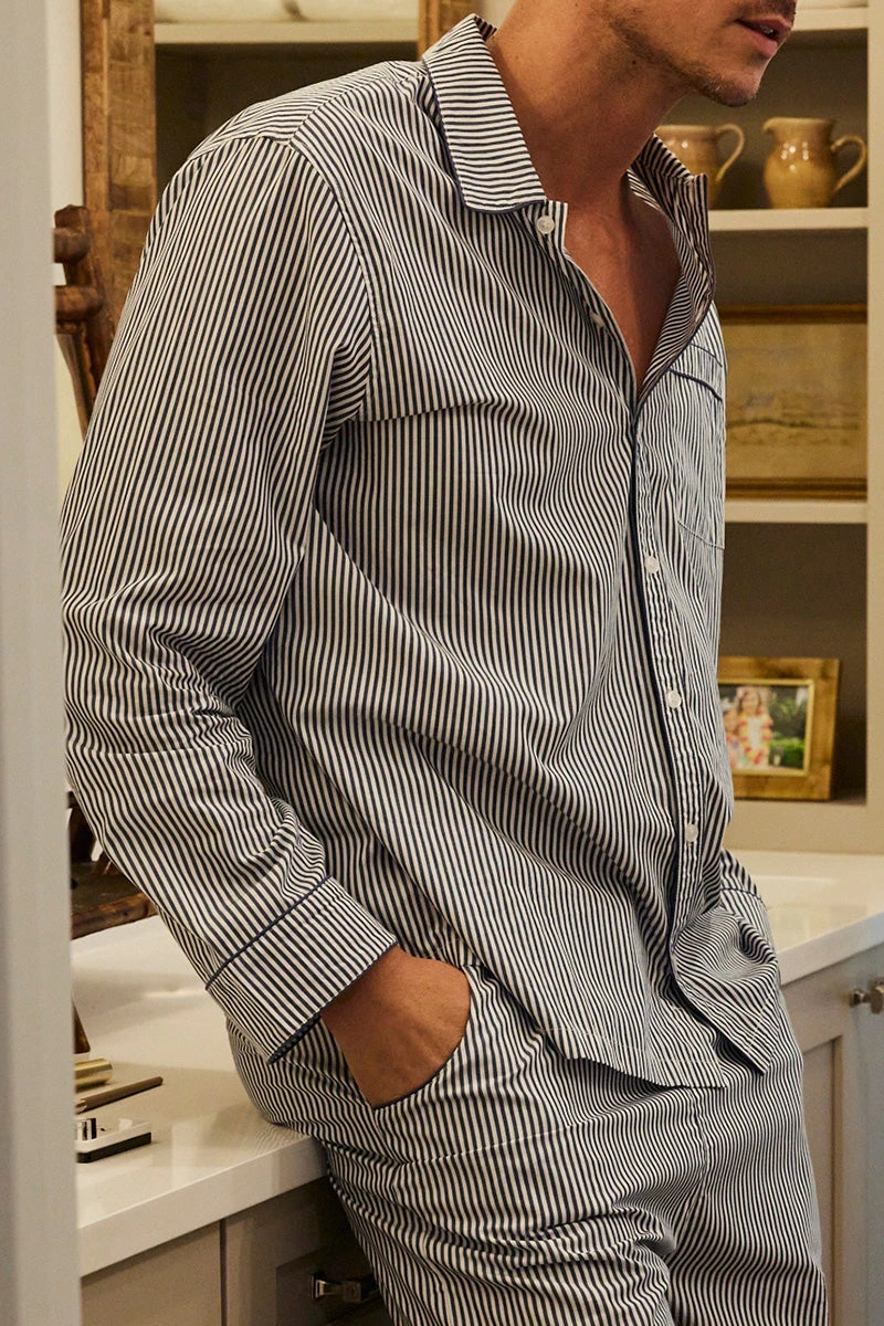 Lake Men’s Poplin Pajama Set In Navy Stripe