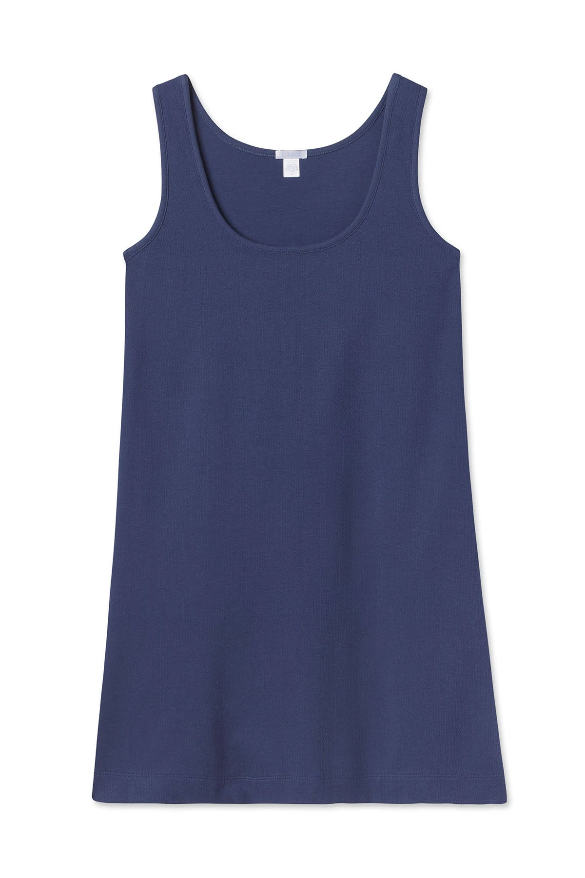 Our favorite Pima in feminine Pointelle, a lightweight knit ideal for hot sleepers and warm climates. The delicate surface details are subtle and oh-so-soft. Shown in Navy, the tank gown is fitted at the top with a wide scoop neck and slightly wider at the bottom, giving it a casual swing. Made from 100% Pima cotton.