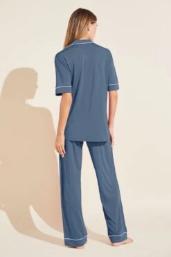 Eberjey Gisele Printed TENCEL⢠Modal Short Sleeve Cropped PJ Set – Animale Coastal Blue/Ivory