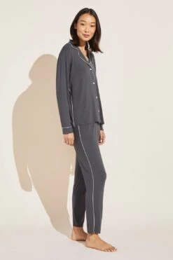 Eberjey Gisele TENCEL⢠Modal Tuxedo Slim PJ Set – Graphite/Sorbet Pink