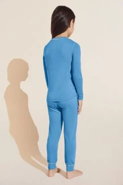Eberjey Kids TENCELâ„¢ Modal Gender Neutral Long PJ Set – Azure/Ivory