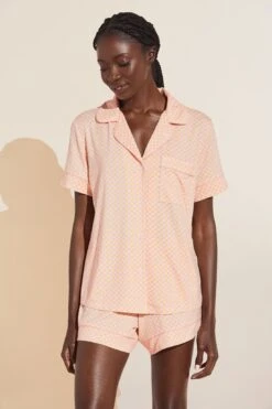 Eberjey Gisele Printed TENCEL⢠Modal Relaxed Short PJ Set – Geo Tile Rose Cloud/Rose Cloud