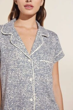 Eberjey Gisele Printed TENCEL⢠Modal Short Sleeve Cropped PJ Set – Animale Coastal Blue/Ivory