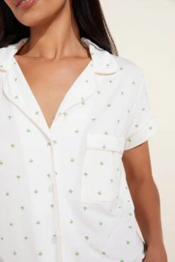 Eberjey Gisele Printed TENCEL⢠Modal Long Sleeve & Shortie Short PJ Set – Forest Evergreen/Bone